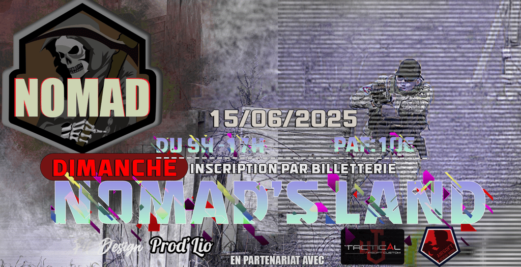 Nous vous accueillons sur notre terrain Nomad's Land, un terrain assez polyvalent puisqu'il possède à la fois des zones de jeux rapprochées et dynamiques mais aussi des zones avec des distances plus lointaines, de quoi satisfaire les goûts de chacun(e)s ! Nous mettons à votre disposition une zone neutre intérieure (places limitées) propre, avec chaises et tables et disposant de l'électricité. Lors de la pause repas un barbecue ainsi qu'un micro-onde sera à disposition de tous. Des boissons fraiches sont également disponibles à la vente durant la journée.