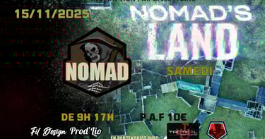 Nous vous accueillons sur notre terrain Nomad's Land, un terrain assez polyvalent puisqu'il possède à la fois des zones de jeux rapprochées et dynamiques mais aussi des zones avec des distances plus lointaines, de quoi satisfaire les goûts de chacun(e)s ! Nous mettons à votre disposition une zone neutre intérieure (places limitées) propre, avec chaises et tables et disposant de l'électricité. Lors de la pause repas un barbecue ainsi qu'un micro-onde sera à disposition de tous. Des boissons fraiches sont également disponibles à la vente durant la journée.