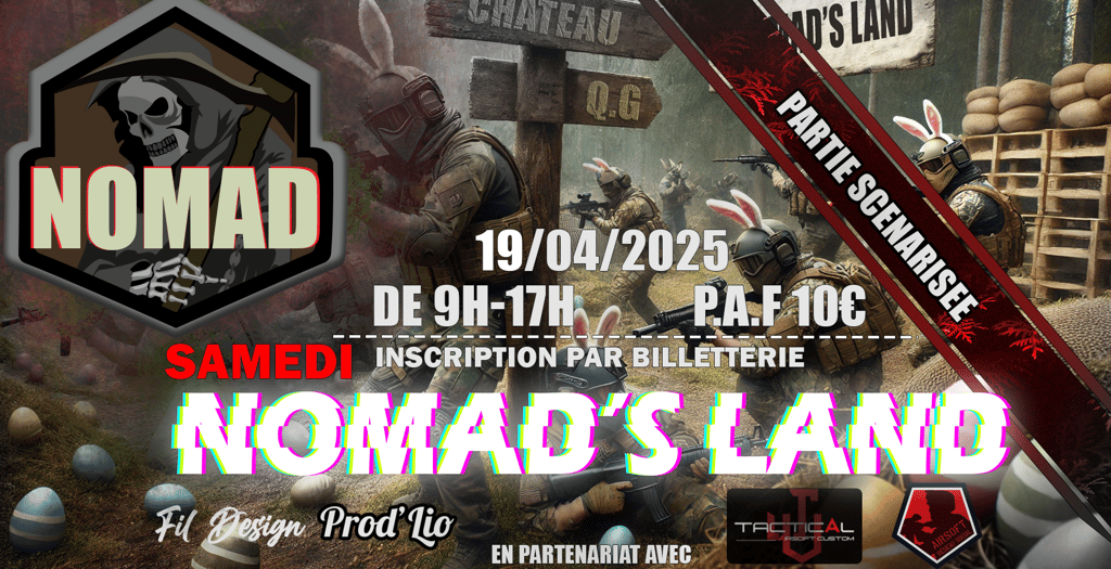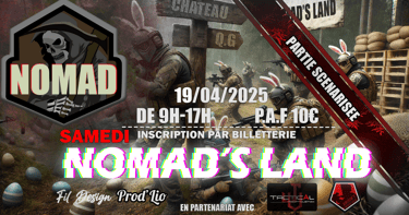 Nous vous accueillons sur notre terrain Nomad's Land, un terrain assez polyvalent puisqu'il possède à la fois des zones de jeux rapprochées et dynamiques mais aussi des zones avec des distances plus lointaines, de quoi satisfaire les goûts de chacun(e)s ! Nous mettons à votre disposition une zone neutre intérieure (places limitées) propre, avec chaises et tables et disposant de l'électricité. Lors de la pause repas un barbecue ainsi qu'un micro-onde sera à disposition de tous. Des boissons fraiches sont également disponibles à la vente durant la journée.